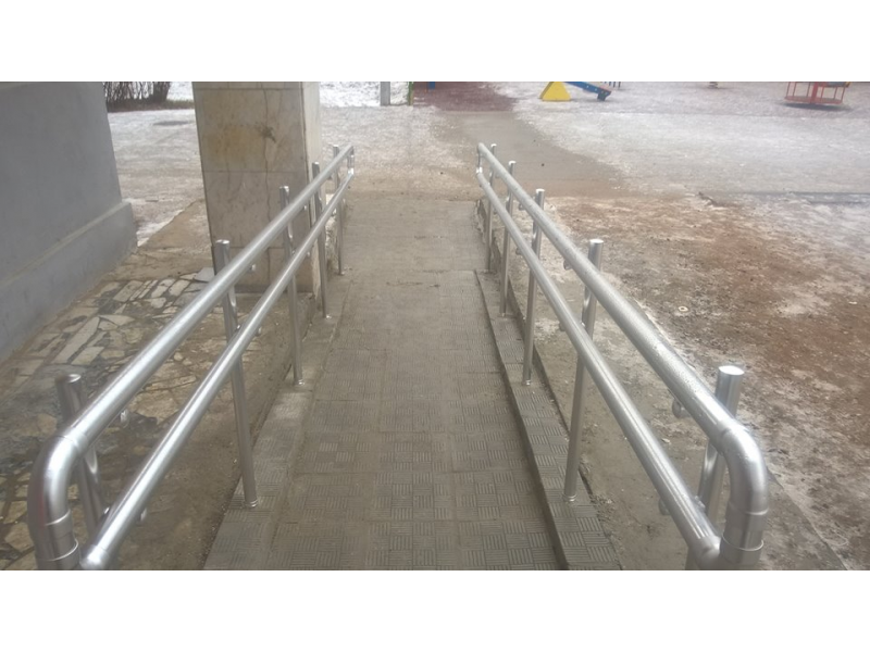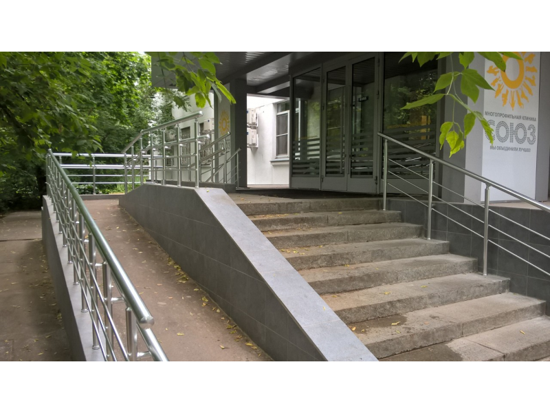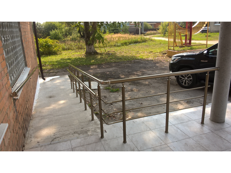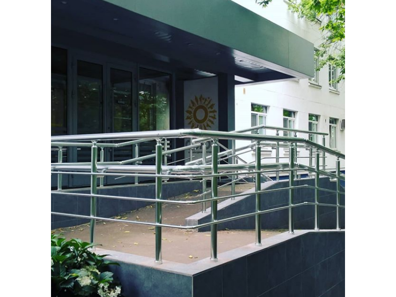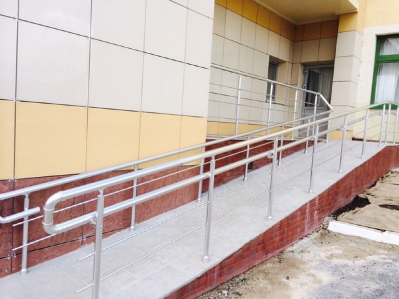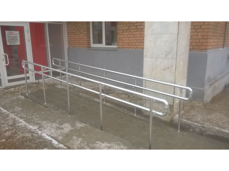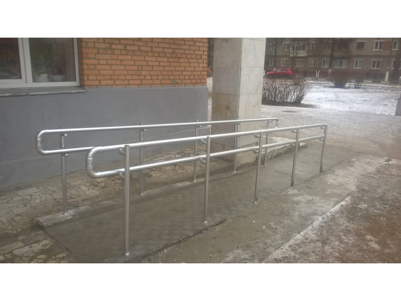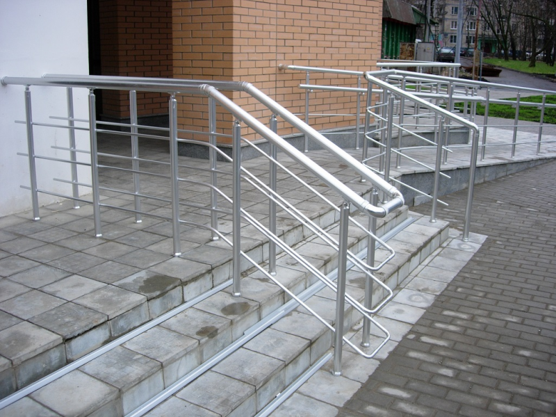 Главной особенностью ограждения пандусов является наличие дополнительного поручня (для детей и лиц с ограниченными возможностями), а так же отсутствие острых окончаний и углов, прочность конструкции.